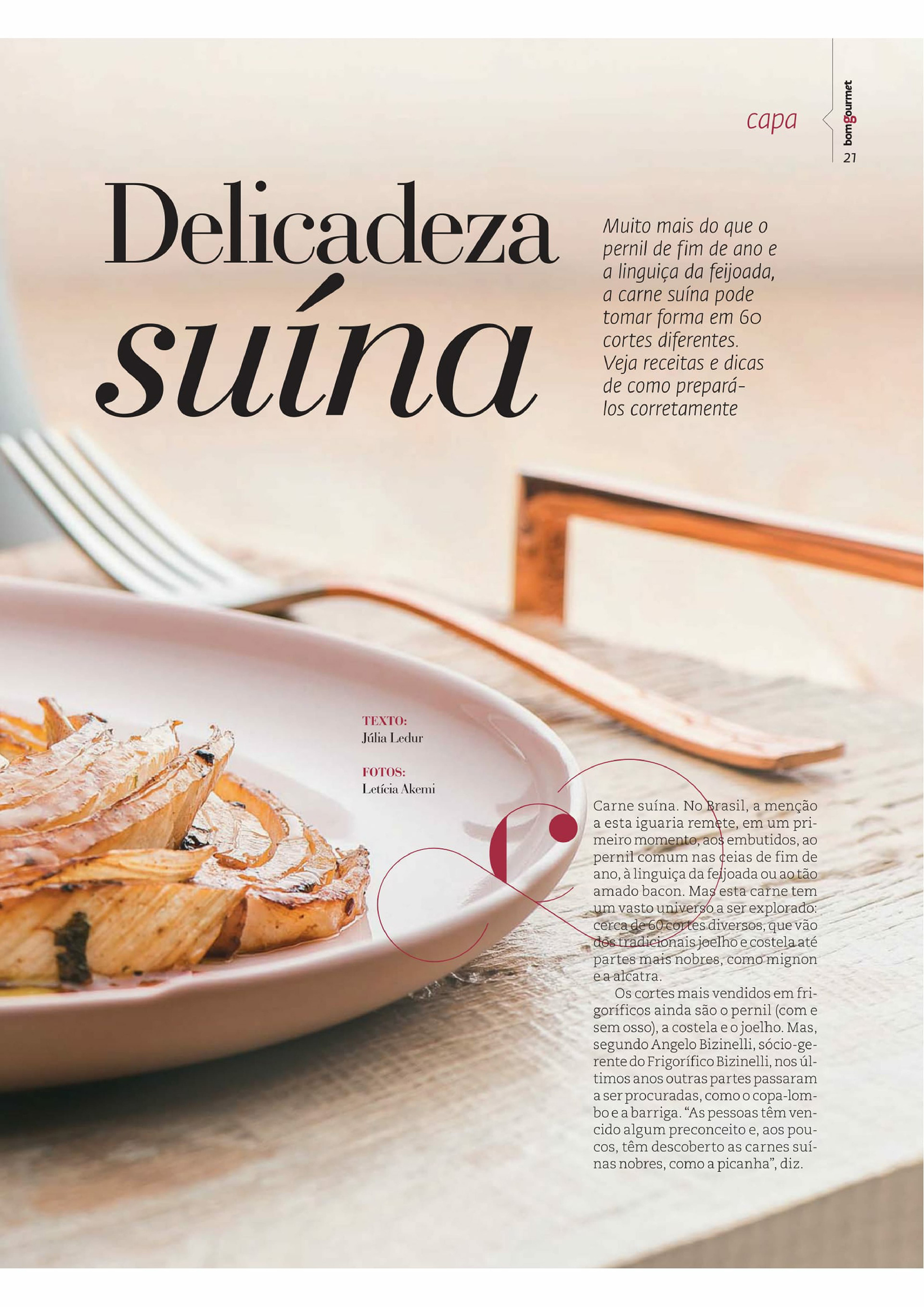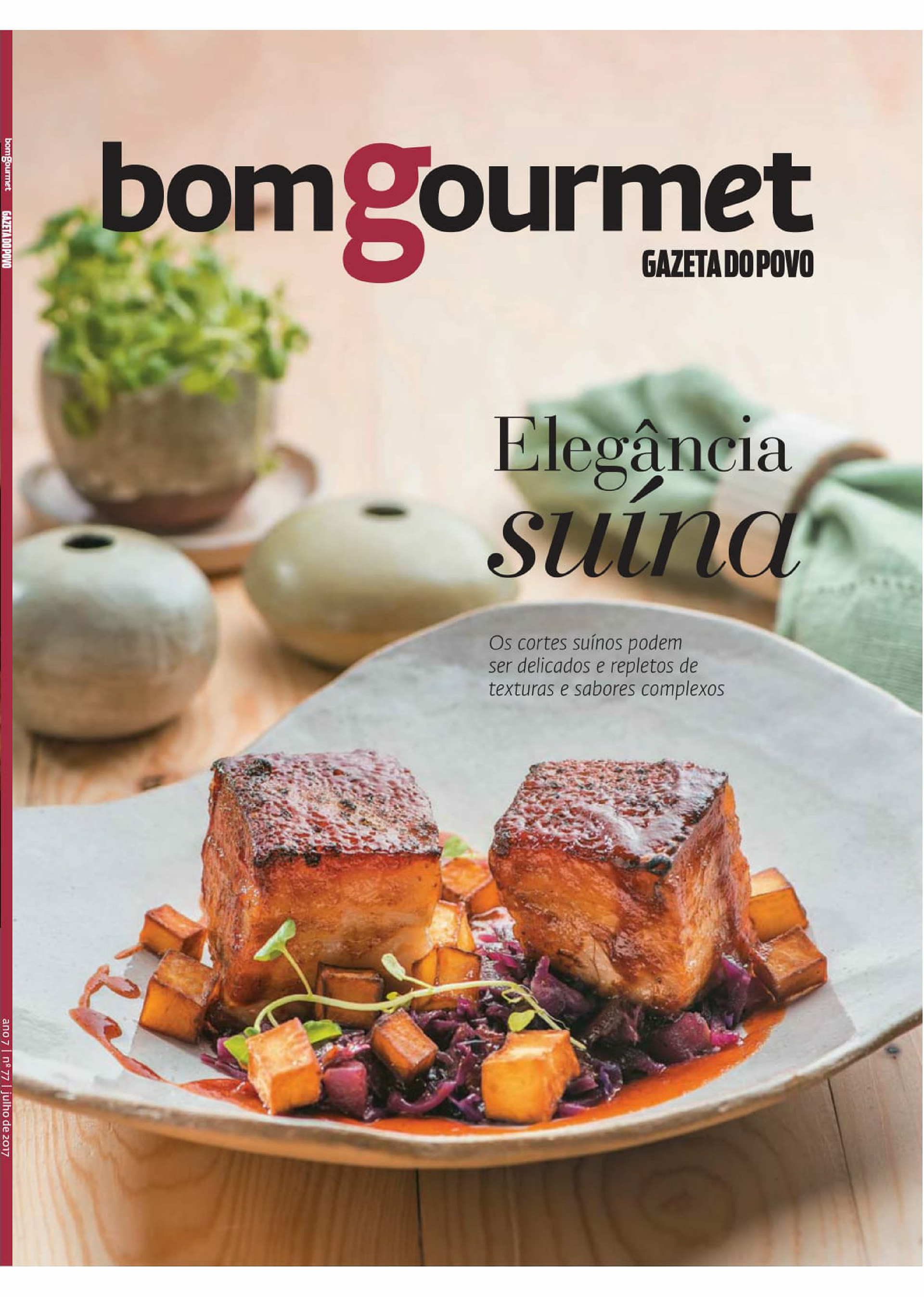 Matéria de capa da revista Bom Gourmet de julho de 2017. Texto trata da cultura de consumo de carne de porco no Brasil e receitas com o ingrediente.